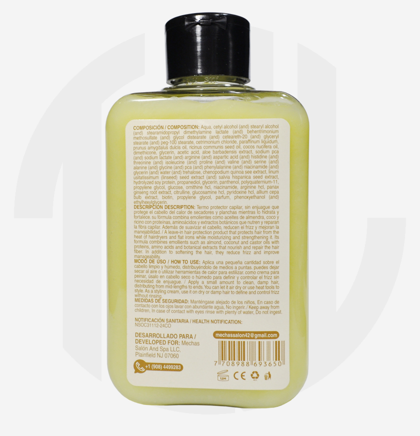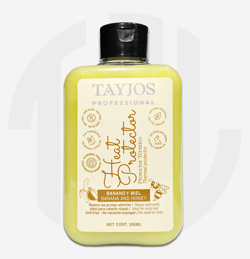 Once applied, put on a thermal cap and let it sit for 20 minutes. Once the time has elapsed, rinse thoroughly with water and wash your hair with Tayjos banana and honey shampoo.