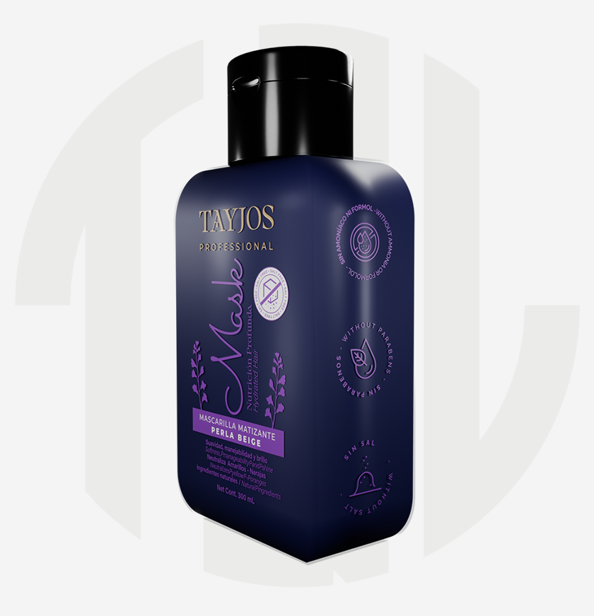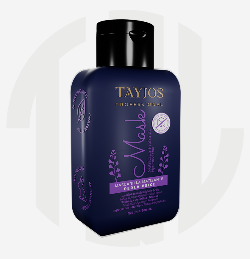 Tayjos Professional Beige Pearl Toning Mask adds color and intensifies the blonde in your hair, eliminating orange and yellow tones thanks to its formula enriched with nutrients and pigments, closing the cuticle and softening it.