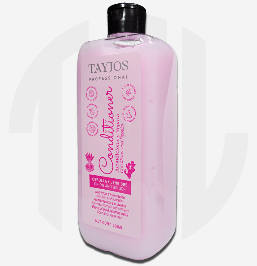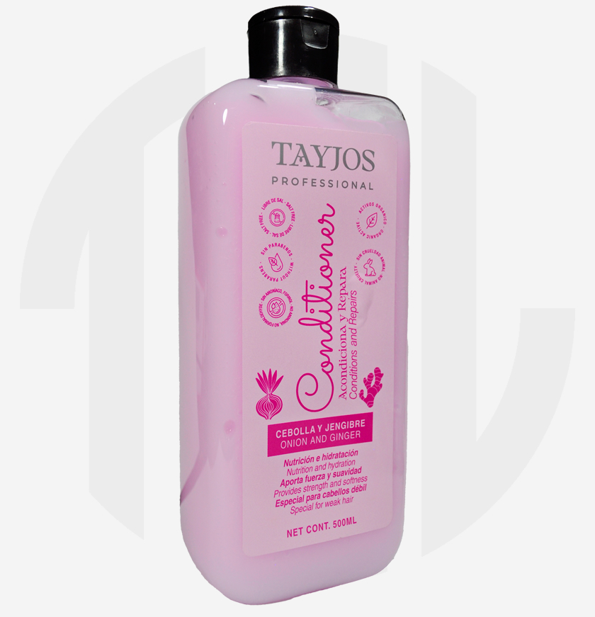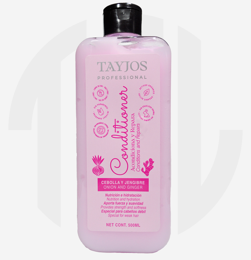 After washing your hair with Tayjos Professional Onion and Ginger Shampoo, apply an appropriate amount of Tayjos Professional Onion and Ginger Conditioner to damp hair.